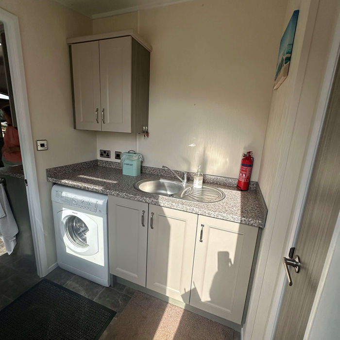 A practical utility room with a washer/dryer, providing extra storage and helping to keep the main living areas clutter-free.